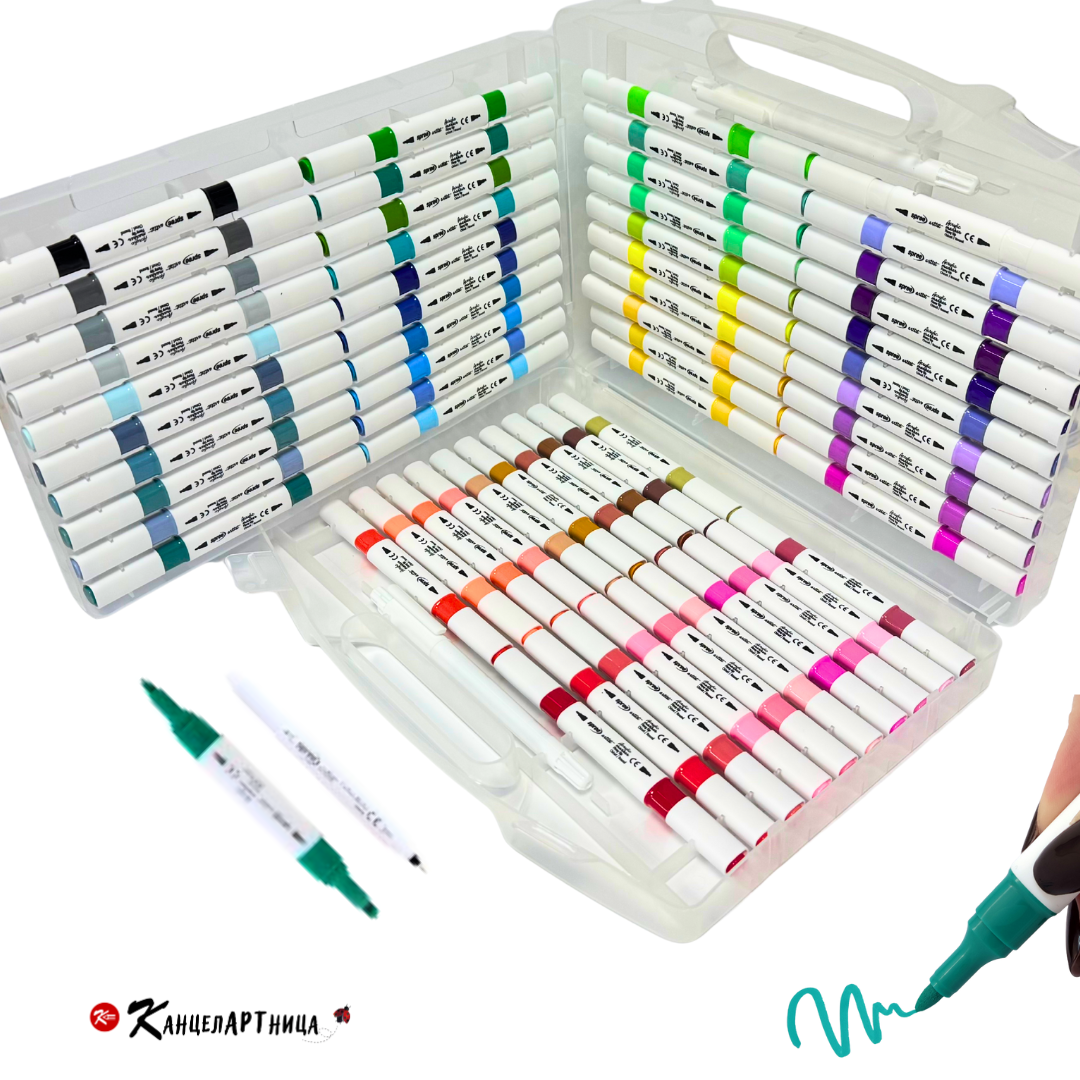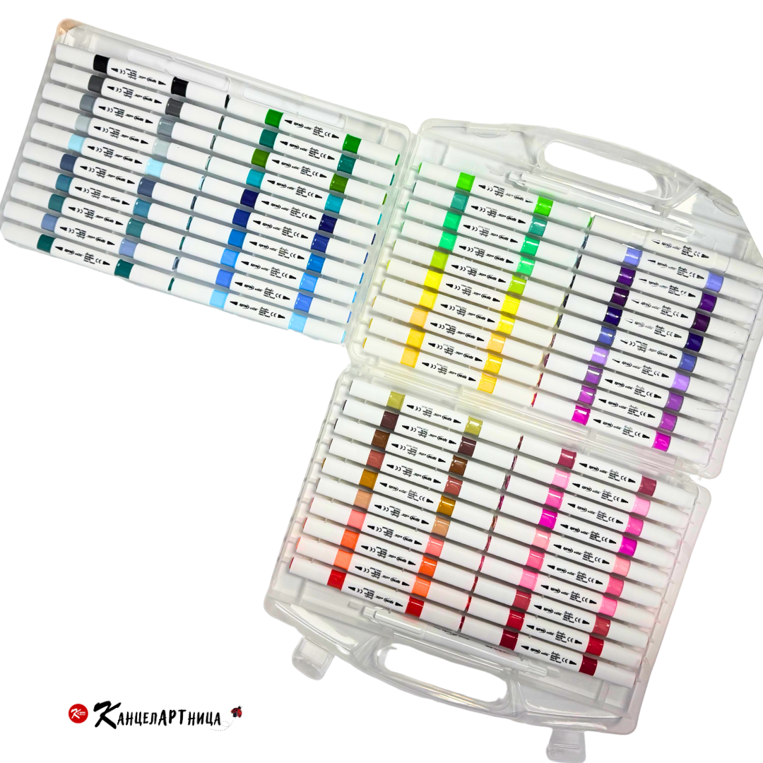 Комплектът включва 60 наситени, устойчиви цвята и 2 контурни маркера, подходящи за ефектни акценти и завършек на детайлите.