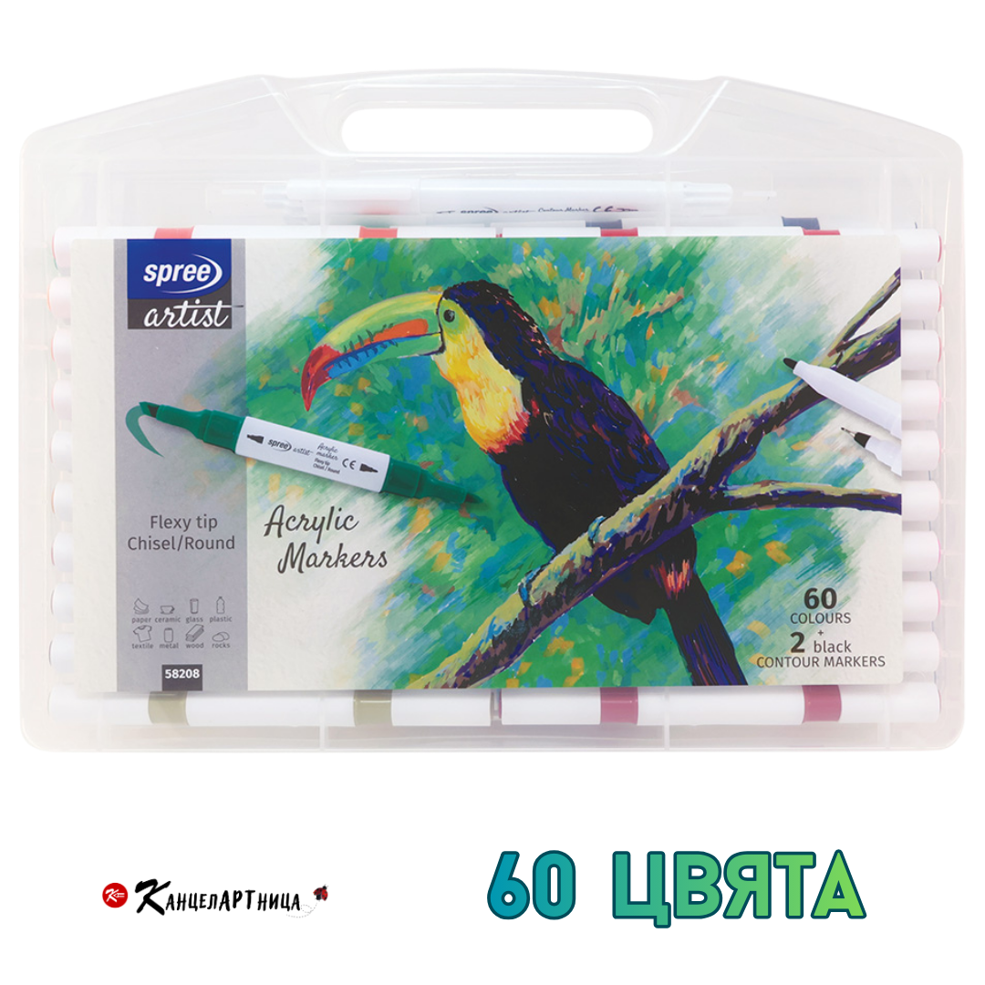 Акрилни двувърхи маркери Spree 60 цв.+2 контурни