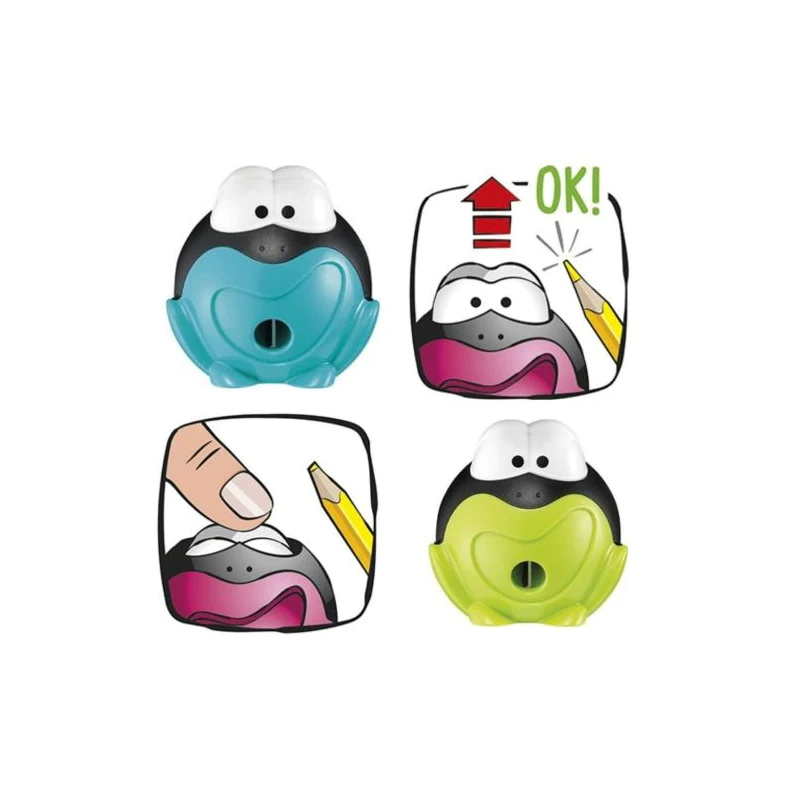 - Eдинична острилка с патентована интерактивна система за подостряне – очите на жабката изскачат, след като молива е подострен