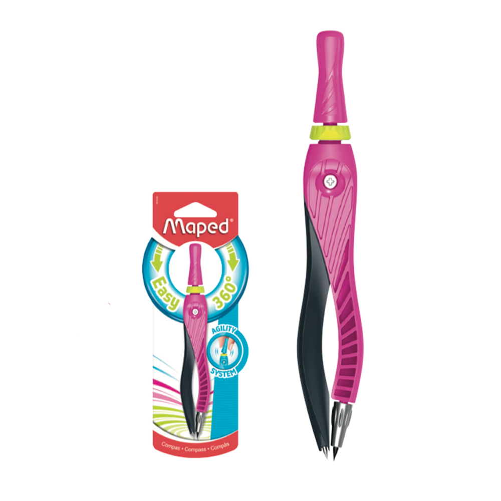 • иновативен пергел без аналог • проектиран за обучение за работа с пергел • подвижен холдер 360° • с графит 2мм.• цветове – син, розов