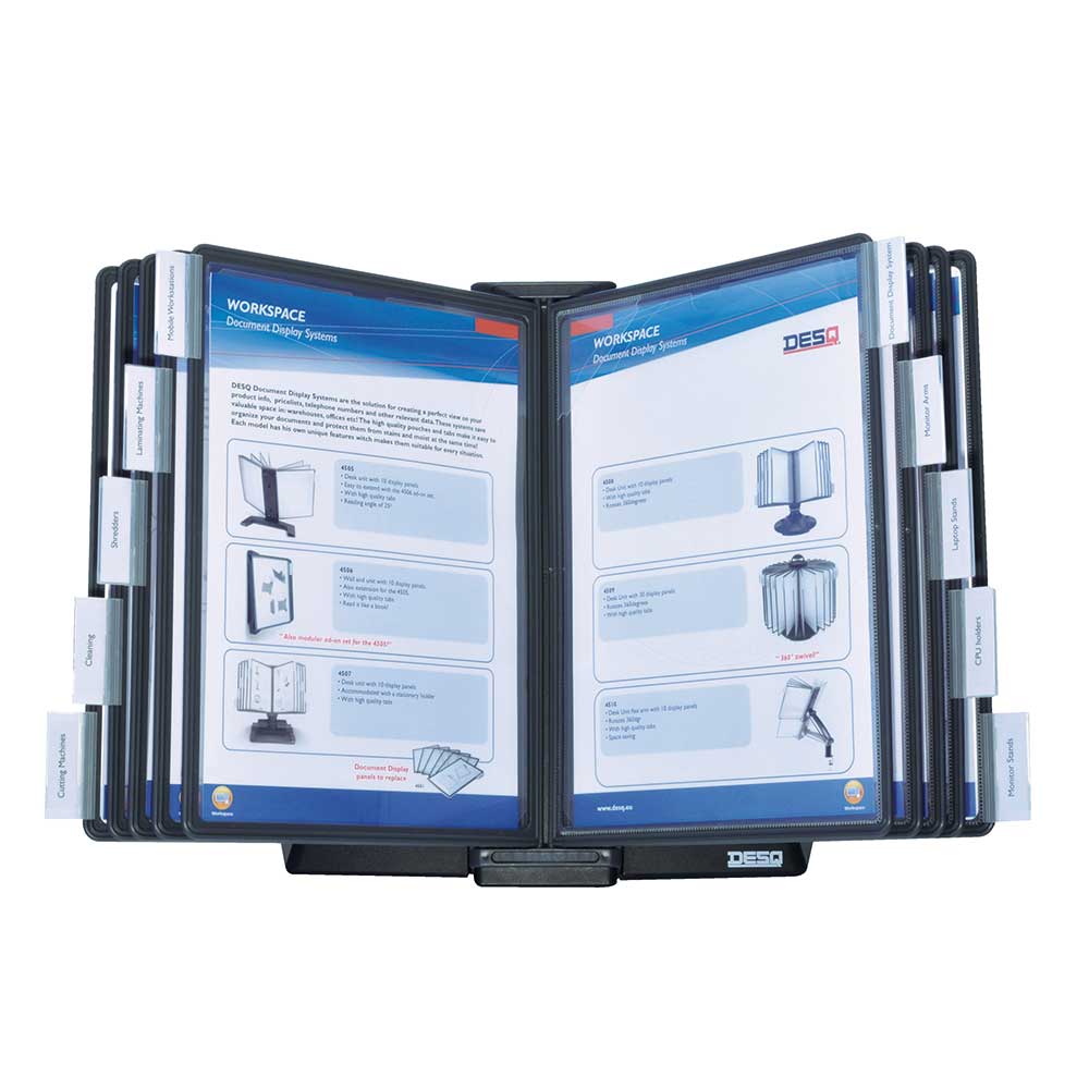 панели от полипропилен без отблясъци за формат А4<br>пакет от 10 панела с възможност за добавяне до 30 панел за документи<br>наклон 25 градуса, осигуряващ максимален комфорт при работа<br></p>